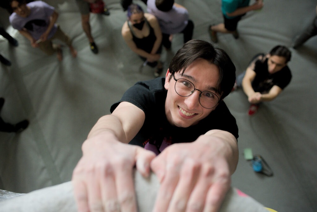 Never been climbing? Let us help you get started! To use the Climbing Wall on your own, you must first watch our five minute orientation video and sign our waiver. After the orientation, equipment is free to use while bouldering (climbing low to the ground without a rope).