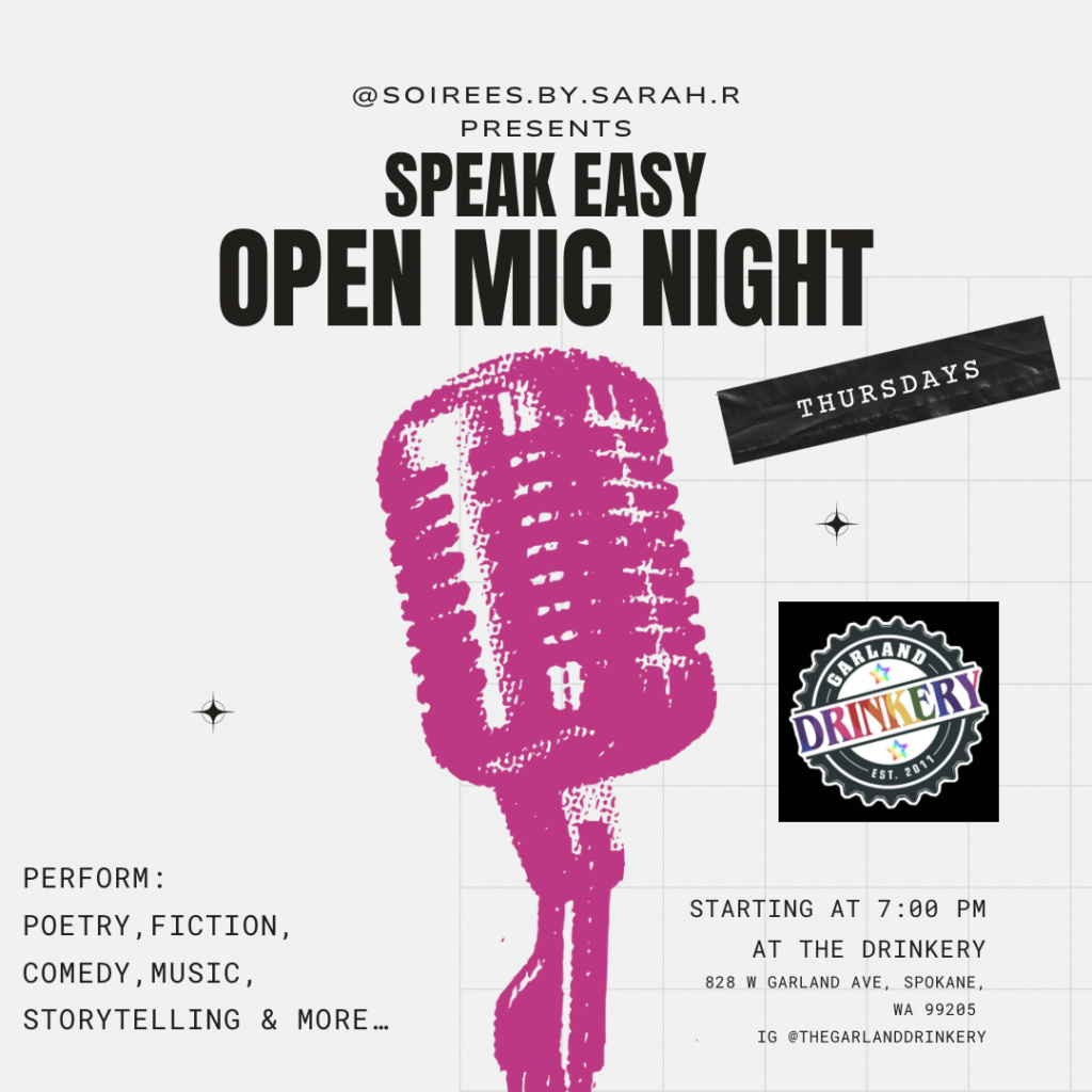 Come enjoy or participate in an open mic night at the Garland Drinkery every Thursday night from 7:00-10:00pm. Sign up to perform spoken word poetry, read an excerpt of short fiction, or something else creative. Each person will be limited to 3 minutes per performance. Please be respectful to everyone attending and know that hate speech will not be tolerated. This is a safe space for people to express creativity and community, not belittle others.